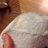 The romper pictured below hardly covers my boobs. Proportionally, it makes no sense. I am 5'6,120 lbs, and a small b cup. It's not like I ever have issues with my boobs being covered. The sewn in pads within the lace are way off to the side-- It just doesn't seem like it was measured properly. Also, I noticed a yellow-ish stain on one of the pads in the top.