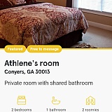 This home is located in Conyers. The lady in charge has issues and a lot of rules. You can't have guest but once a week. They're cameras all over the place except in your room and bathroom. She watches and monitors your every move 24/7. Parking is terrible because you basically park on the side of a hill and there in no sufficient space if you have a big truck. You can't really use the washer and dryer if you have large loads and have limited space in the fridge. You can't use her oven or stove.