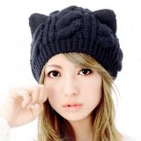 -Stylish Cat Ears Shape Design Women's Knitted Hemp Flowers Hat