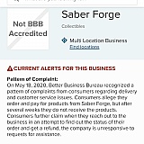 I see a lot mixed reviews here but I want to say I had a great experience with Saber Forge. Morgan and I had excellent communication and I had two sabers repaired in a reasonable amount of time, which easily exceeded t the expectations given to me by the company on the website and in writing. Great job with about a two month turnaround on the service.