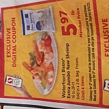 Advertised Exclusive Digital Coupon- Waterfront Bistro EXTRA JUMBO RAW SHRIMP 16-20 count, $5.97 lb. OK