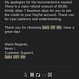 I had 2 problems in a row with Saks 5th off. The first was that they lost an item (carrier never received it) and need days of investigation before refunding me. The second one was that I put 2 items in my cart and applied a discount coupon. I confirmed my purchase. When I received a copy of the order by email, only one item was there and with no discount. The detail is that I only purchased this one to reach the discount value. I had no real interest in it. I called immediately to cancel the order, but they said they could do nothing about it as the item had been shipped. Obviously, they lied as this happened on a Saturday evening and I was given no tracking number yet.