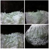 At the neckline, the lace is just chopped off and left to fray and is badly stitched to the nasty thin nylon lining matetial; the seams do not match so there is a 2cm difference between the shoulder and dress front panel; there is NO fitting - no darts, no shaping, just a gathered 'bag' of nylon lace stitched to a shapeless, messy, badly made 'bodice'. The 'underskirt' is simply a piece of thin, NASTY nylon lining fabric which only comes halfway down the skirt.