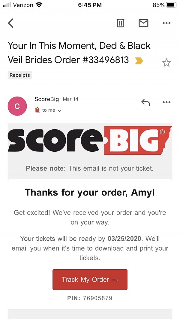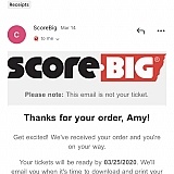 I bought tickets for a bad omens concert and it took them THREE MONTHS to send my tickets electronically. They waited up until the weekend of the concert to send them and when I called each month they said "the venue isn't releasing these tickets yet". Talk about anxiety central. The tickets were nearly $500 and a birthday gift and I had to wait three months to see if I got scammed or not. I saved about $20 buying the tickets from scorebig but it wasn't worth the $20 for what I paid in absolute stress. All of my friends who bought these tickets from other sites had them sent within 4 days of purchase. DO NOT USE SCOREBIG unless you're cool with your money just hanging in the air for months.