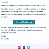 Today (7/26/2020), I woke up this morning to a transaction on my card from Scribd. I cancelled with you months ago! What the hell is going on?