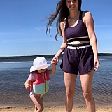 I just put on the new swimsuit I bought and took my kid to the beach. It's so comfortable! It's also super convenient to move around in, no worries about wardrobe malfunctions. I can have fun and take care of my child at the same time. Honestly, it's amazing!