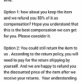 I politely replied "no" and another person wrote back and again asked if I would take a 30% refund or an exchange. I've emailed "no" again and haven't heard back after 2 days.