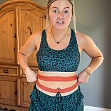 The swimwear fits me perfectly, especially the high-waisted shorts, which offer a comfortable and flattering look.