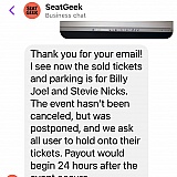 This business is a big mess of gobbly gook! Bought tickets using my credit card for the Stevie Nicks concert in Houston and 24 hours before the show, I was notified it was rescheduled. Wanted to see her and tried to make the rescheduled date work but couldn't. After at least 8 emails back and forth, they agreed to at least allow 100% of the paid amount to be saved for future use. When I tried to use it a few months later, the system informed me I had to buy tickets at least the same amount as original tickets. No tickets were available at the same amount. There were lots for less tho. I ended up spending another $150 on my same credit card plus the original $585 to just use my $585. Now, a week before that show, it is rescheduled for a full year from the planned date. I asked for a refund and they only refunded the second amount, not the original $585. Such BS! After all this crap with them and their ridiculous rules, I am still out $585. They keep saying "so sorry" but refuse to do what's right! I will warn as many people as I can on as many sites as possible to avoid any dealings with these thieves