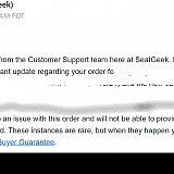 I have had an incredibly frustrating experience with Seat Geek and would never use them again! In contrast, I can wholeheartedly recommend Stub Hub. If you have any issues with your tickets from Seat Geek, you will absolutely never get a human being to help you. Buyer beware!