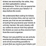 AVIOD AT ALL COSTS! My husband spent over £2,000 on Taylor Swift tickets in February 24 on what he thought was good seats, only to receive the tickets 24 hours before the show and we were given the worst seats in Wembley! Seats were at the back of the stage and had a face value of £45?!? I tried reaching out and explained these were no where near equivalent to the seats we booked. Every time we got a standard response referring us to their terms and conditions… how can a side stage view be in comparison with rear seated tickets?! Complete scammers, ZERO CUSTOMER SERVICE. Please avoid, it's not worth the risk.
