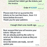 We ordered 2 tickets for football match, received the order number and we were not able to get back to the order. The respective sum of money has been withdrawn from my account instantly and no tickets appeared till now. The landline provided is always busy and I have sent 3 emails in order to get my money back or the tickets to be sent without any feedback.