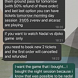 I bought the tickets 3 days before the match and got contacted by customer services when they realized that is gonna be a match between Djokovic and Nadal and the prices went up high they stop answering and probably sell it for a much higher price. Never got my tickets and it ruined my trip.
