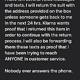 Placed a $1500 suit order. Realized two weeks later that it would not arrive on time so I started calling and emailing their " no hassle" return policy, nobody ever responded, I had no choice but to send back to the address on the box, the day they saw I did that they all of a sudden responded saying it was not within the return period ( of course not they intentionally didn't respond and waited the 7 days to pass), the suit quality wasn't even worth more than $400 I sent it back intact and they kept both the suit and my money. I'm still disputing this with Klarna. Save yourself lots of problems and buy a real suit from a real company. Also read all the other bad reviews because they are true!