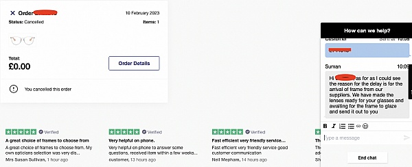 I ordered my glasses online and was really pleased with the choice of frames and the quick delivery time.
