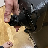 All right, being honest, fragile material is expected to break, which I was already expecting and don't complain, but then you look at the suitcase itself, a reinforced Samsonite polypropylene item. It was also in pieces, with two big cracks and one of the wheels so badly damaged that it was almost removed from the main body along with a large chunk of polypropylene.