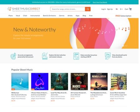This website is a real con. When you buy sheet music to download they sign you up for a trial PASS subscription without you asking for it or actually agreeing to it. The trial is (supposedly free) but then automatically renews itself unless you cancel it. Cancelling is virtually impossible as you can't do it on the website and they do not reply to emails to their Helpdesk. It is dishonest and more hassle than it is worth.
