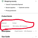 The material posted on Shein's site is full of lies. I bought it because the description said it was 70% cotton. Due to skin disease, I cannot wear products that are less than 60% cotton. However, the product I received was 100% polyester, and Shein specified that it was the only product that could not be returned. Isn't that a scam? Of course, I contacted customer service, but it's pointless because they just give me a canned response from a machine. This store is only used by people who want clothes made from 100% polyester. (the worst quality and just few cents cost)