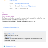 In a chat with Kevin on June 5th, I was advised "Due to some problem in our factory, recently thousands of orders are inundating our factory, there might be some delay, sorry for that, we will urge our relevant department to send your order asap"