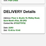 One of the worst experience as the delivery time and date was first really long and frustrating to establish and much later than what was agreed. They said to give a delivery slot within 3-4 days but I could only get it after 6days. The delivery was for today 21/03, which I asked to change as it is my birthday. They said they can't change the date to Friday or the weekend and I said I will come to the office only for them to receive the item if that's the only slot as I cannot do it next week.