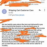 ShippingCart.com misplaced my item over 6 weeks ago and I continue to message them with no resolution to the problem. They create a support ticket then close it in two days saying I never contacted them. I can't do anything to resolve it because they have no living breathing humans to talk to in order to fix the problem so I just sit here screwed over by them and out 400.00 which is the cost of the item they lost. Never think of using their service or should I say lack of service.