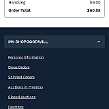 I purchased a $6.66 book and I was charged 31.59 including handling and shipping. This was a book which could have shipped media for $4.99. There was no customer cooperation from them. Sent UPS, it still could have shipped for half if packaged correctly. Beware if the outrageous handling fees and shipping costs. Never buy a book or media on Shop Goodwill.