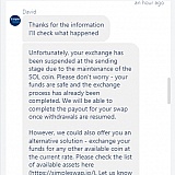 3 hours later, my exchange fails. I am told this is because of a problem with the SOL token on their end.
