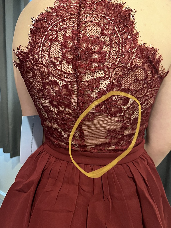 Received a dress that was missing an entire section of lace on a full lace back dress. Sent photos to the company, who argued that was supposed to look like this and refused a replacement. Obviously a scam operation, avoid this company at all costs!