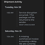 I ordered a pair of shows almost two weeks ago and the only order information I get is in progress. I contacted the company for more information and they said I would get no tracking information until the shoes arrived in Canada. I asked for a refund as I expected better, but I was told that it was not an option. This is totally unacceptable. I expected better from their brand. I bought from the Canadian site but I have to wait for my shoes to arrive from California? Not Happy!