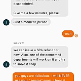 Food sat for a hour cancelled the order but they delivered it anyways had to throw it out but they only want to give 50 % back.