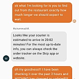 So - similar to many other reviews - we ordered $120 worth of food, waited, it was set to "delivered" almost immediately with no tracking. Contacted help, they said "it should be picked up soon"... and it simply never arrived. How does this happen? I can't help but think the driver said "Yep, I dropped it off" but then took it home. So, no food and I wait for a week for my credit card to be reimbursed. My daughter told me, "yeah, that happens sometimes." WHAAA? You're damn right I'm gonna "Skip".