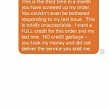 Against my own intuition, I thought I should give them a chance to redeem themselves after a couple orders were driven off by their incompetent drivers. BIG MISTAKE. Customer service won't do anything for you and now more often than not, something gets screwed up in the process of making an order and receiving food. In exchange for me never receiving a $40 order, they gave me a $5 skip credit! LOL, I'll never use them again.