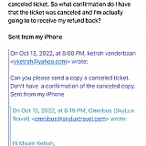 I went to check in - the flight had been cancelled and my mkney had not been refunded. Spoke to sky luxe and they assured me the mkney was being refunded to my card but that I would have to pay again for a new ticket ~ I was at the airport - had no choice - they booked me another flight in KLM for even more mkney than my