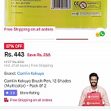 The below attached brush pens pack's original rate is Rs195 but you guys have marked Mrp for Rs700 and selling it for Rs443 and you are giving offer to us for Rs 256 how bastards you guys are!? Iam going to share this all over the social media platforms and show your true colours sucking people's money like leaches. You guys don't deserve single star also. நாசமா போவிங்க டா நாய்ங்களா...