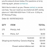 I had over $90 worth of prints made including shipping. My wife uses these for cards. The jpeg files I uploaded were from pictures taken by my wife and the overwhelming majority were files we have had printed at least 3 or 4 times before. The snapfish prints were terrible. The color was all washed out. I scanned the images of both our prior prints and the snapfish prints to compare and uploaded to Snapfish during a customer support chat session. The difference was so obvious. It was a waste of time. The technician, Dinesh, would not bother to read what I was telling him. He kept telling me the print will not match the onscreen image. I tried repeatedly to tell him I was comparing prints to prints - not a print to an onscreen digital image. He finally just closed the chat on me and despite me giving my phone number and asking someone to call, he said he would elevate the complaint and they would email me. Snapfish does not give any method of contact for customer service other than a chat. A couple of days later I received a simple email telling me the same thing Dinesh said - the print will not match the onscreen image. I emailed back and told them again that I was comparing previous prints of the same jpeg file printed by Snapfish - not comparing the onscreen digital image. I again asked for a phone call for clarity sake and resolution, but they do not care. Their customer service is as bad as their prints. DO NOT waste your money. No matter how cheap their prints are, it is still a waste when their quality is so very poor.
