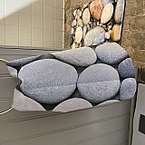 I ordered 6 River Rock bath mats which arrived in 2 shipments rolled so no creases and flattened out nicely! They match my River Rock Bsth & Hand Towels and Clock and look beautiful with my new stone floor and counters! The mats are small but nonslip and ok thickness and very vibrant! The bath towels are really large bath sheets and the hand towels larger than regular and beautiful! I wish Society 6 had a better & more interactive website where I could write reviews and better track orders but mine arrived within days and are beautiful- especially the $50 River Rock Floor Pillow! See my pictures! Jeanne
