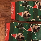 Ordered personalized socks. Received socks that had wrong dogs name on them and lettering cut off. Photo Socks part of Soufeel refused a refund. Who the heck is Mojo?
