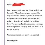 I'm so sorry you didn't get your order in time. At the shopping season, the delivery time will be longer than before. Our customer service are trying very hard to reply your email ASAP but it will take some time. Thank you for your understanding.