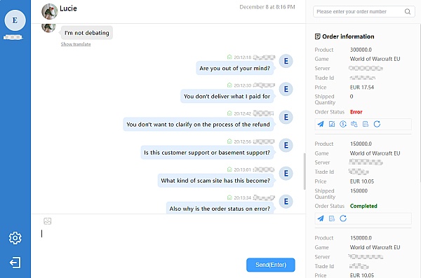 Used to be alright in the past, but it's truly a disaster nowadays. Never received the gold I paid for and they are unwilling to refund. They changed the delivery status to error without explanation or willingness to do so. They basically direct you to your bank even though a payment method was used that needs them to refund on their end, which to them is "undebatable" apparently. Communication is abysmal cause they aren't honest and just stop replying or close the chat on you. Absurd service. I would take all the 5 star ratings post 2020 with a huge grain of salt. You can get gold way cheaper on other sites that literally deliver it within 45 minutes face to face unlike SSE that doesn't deliver at all and already had a tendency to just email it even if you choose a different delivery method. I ordered here out of habit which was a huge mistake. So beware.