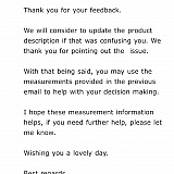 With that being said, you may use the measurements provided in the previous email to help with your decision making.