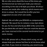 After accepting the original order and timeframe they asked for an additional $30 on top of the $28 we had already paid additional for express shipping. Dress came not altered at ALL, way too big for her to wear and we were forced to put something together last minute with only 2 days before the event. Couldn't use the dress at all and was so upset. Immediately tried to return it, but Stacees went quiet on us, not responding to emails. I reported them to Pay Pal, which got them emailing again. Instead of providing return/refund instructions, they offered us $35 and keep the dress. We can't use the dress, and wanted the $166 we paid for the dress refunded, so I kept pushing. They came back a second time and offered $60. I pushed back again and they responded saying they couldn't do anything unless I send measurement photos proving the dress doesn't fit. All during prom and graduation season, which is SO busy already, with no time to be messing with a dress that never fit. Paypal closed the claim cause too much time has passed and now I am still trying to get a refund on my own.