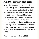 When I asked to make a complaint via their website chat they have literally just given me this link to trust pilot to leave a review so I guess they do not care about how bad their customer service and even their dresses are. I'm very very upset by the whole thing and just want my money back