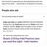 Just imagine, you hire a new till and a till operator, to help your business. He comes along and takes the payments as customers pay, he smiles and takes the money. Then, after being there for a few days, he has gone and so has the till. So you call him and say can I have my money please? His reply? Sorry but my name is Stripe, when you hired us there was some small print and it says we can do what we like with YOUR money.