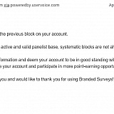 I've been using Branded Surveys for about a month and so far they have blocked my account TWICE for literally no reason. I only noticed after seeing that I was not receiving any surveys for a couple of days and the redeem option was not available, and when I reached out to them both times about it they said that their "inaccurate" "systemic blocks" have accidentally blocked my account. Seriously?! I live in Canada and I never use a proxy but they keep blocking me. Super annoying but the only upside to this site is how fast their payout is, received the first one in 1 day and just requested the second one, lets see how it goes