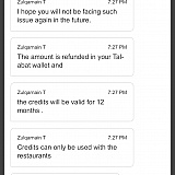 Then immediately a pop up saying that you can save qat 35 on grocery. Tap on it, forwarded to the items in the Mart and pay wt credit card. Bill paid in full, no discount. I Start the chat, operator asking me to make screenshot of of the offer (seriously?). I reply, you are not helping me, you ask me to do things for you, you should have everything in the system. OPERATOR: wait a few minutes please. I wait 10 minutes. He comes back with: The offer is expired. SERIOUSLY? How can an offer be expired if it pops up and make you buy things? FAKE OFFERS. BAD CUSTOMER SERVICE. Operator Ahmed is a LIAR!