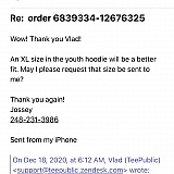First time customer and I was very pleased with my experience. I ordered a hoodie as a gift for my nephew, but I choose the wrong size (too small). I expected a hassle, I expected to have to purchase a larger size, I expected to have to fuss with returning it, I almost said ‘forget it, just run to the mall and find something else'. But I sent an email anyway and boy was I blown away. The company responded immediately with kindness. I actually felt like they wanted my long- term business and appreciated me as a customer. They told me not to worry about returning the too-small hoodie and they would be sending me the larger size with no additional cost. Wha!?!?! I just purchased a new truck from GM and they made me feel like a burden and couldn't have cared less for my business. General Motors could use a lesson from TeePublic and I've been telling all my family and friends. Exemplary
