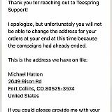 We sincerely apologize for any inconvenience! Our Customer Support Team is always happy to help and can be reached directly through http://teespring.force.com/NewCase?l=en_US or through our online chat, available Monday - Friday, 9am - 5pm, EST. We have also sent you a private message to further assist. Thank you!