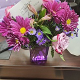 Flowers didn't look as I expected or close to the picture. I was not happy. It wasn't close except it had a purple vase.