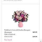 This will be my last order with Teleflora. I've had too many issues with trying to ensure the order I pay for is what the recipient is getting! Service fees too high, their florist always creates substitutes, late deliveries!