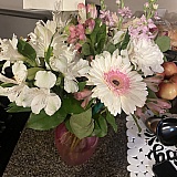 I was very pleased with the flowers and service that I received from the local florist. The flowers are so pretty. What I am not happy with is the cost of $21.98 from Teleflora for the service. If I had realized that I wouldn't have bought from them. Next time I will call my local florist instead.